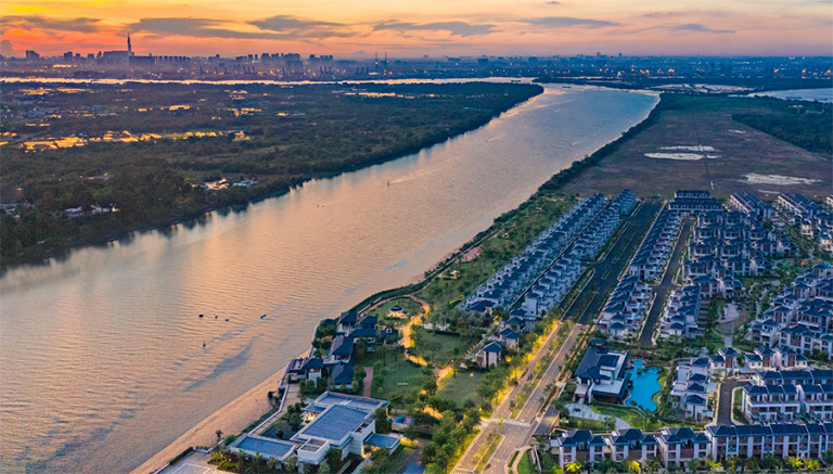 Toạ lạc trên đảo riêng với 4 mặt giáp sông, thiên nhiên thuần khiết, thủy khí hài hòa mang đến nguồn năng lượng tích cực, sức khỏe dồi dào và tinh thần thư thái cho các chủ nhân.